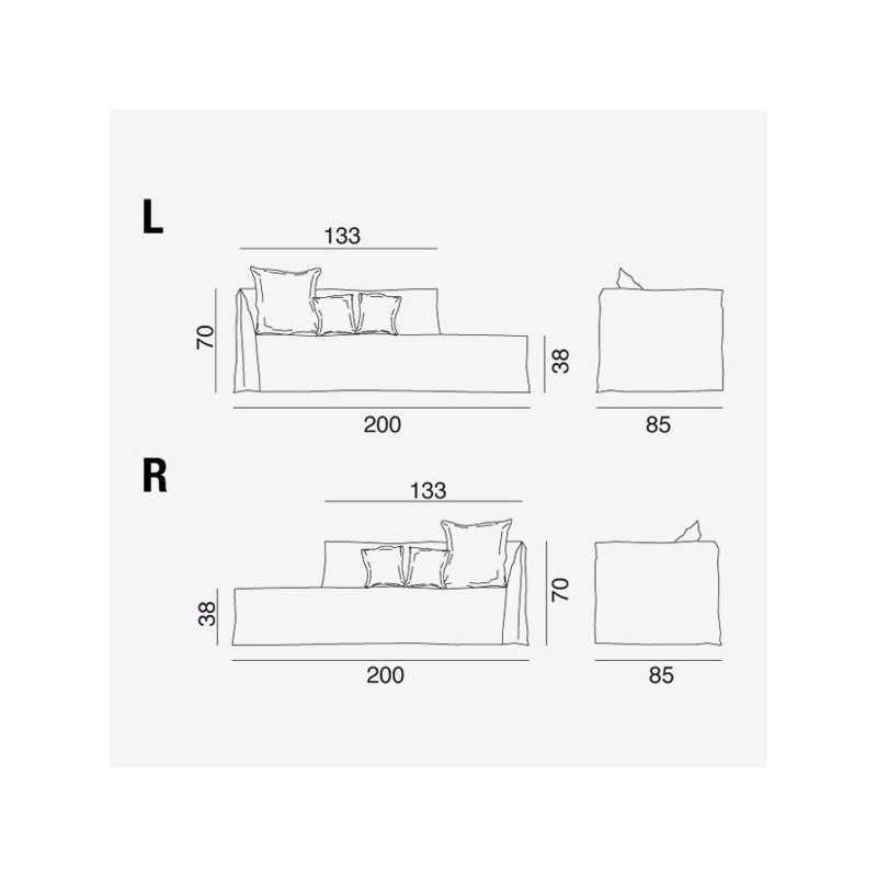 Ersatzhusse für Gervasoni GHOST 20 Récamière mit 1 Armlehne rechts oder links